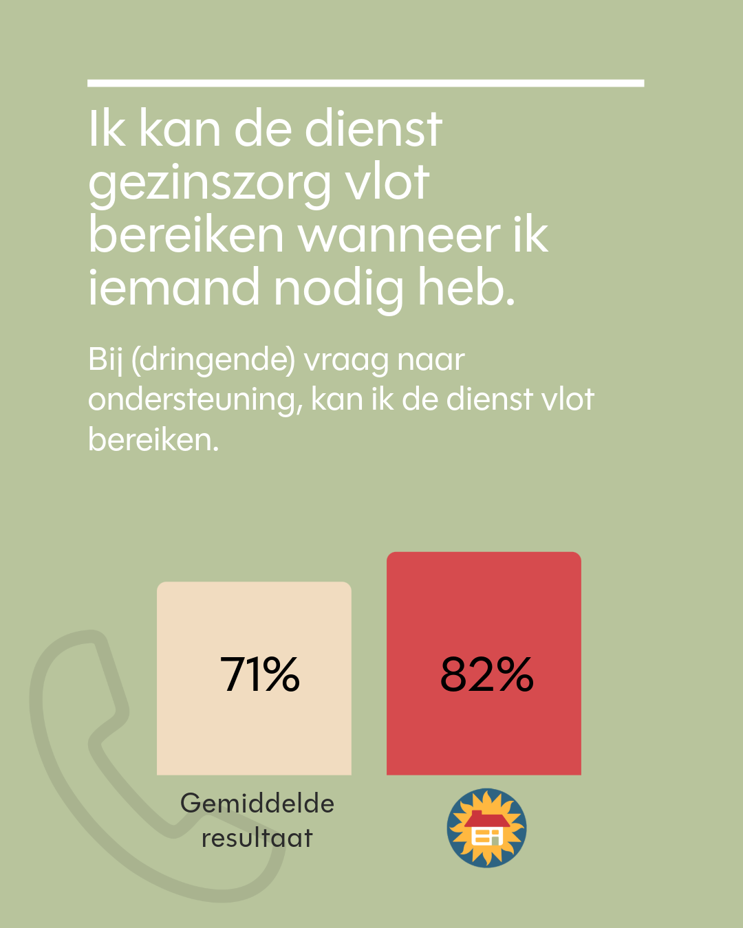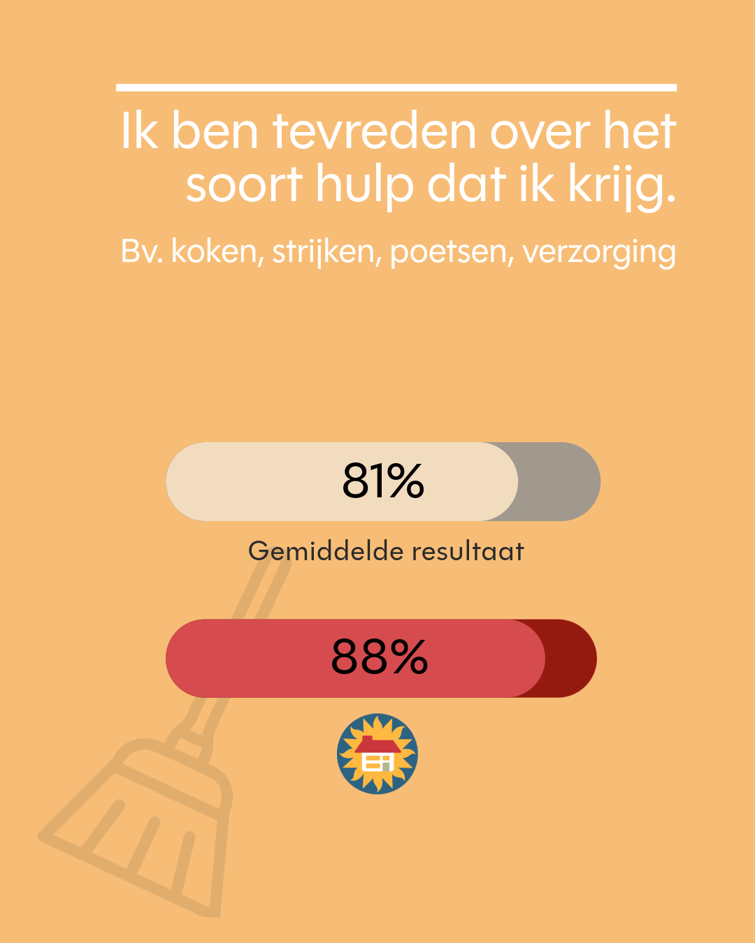 In totaal werden ongeveer 12.000 zorgvragers bevraagd. Daarvan vulden meer dan 1400 cliënten van Thuiszorg Familiezorg een vragenlijst in over hoe zij onze gezinszorg ervaren op het vlak van persoonsgerichtheid, de tijdigheid en de toegankelijkheid. Daarnaast werd ook gepeild naar de algemene tevredenheid.